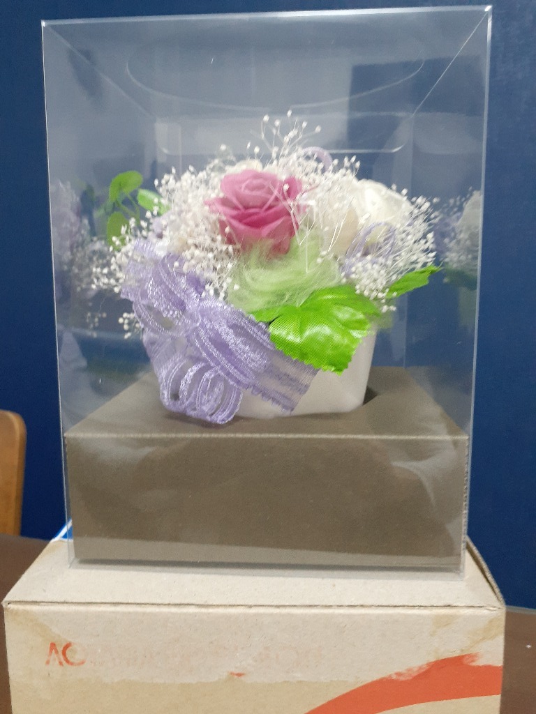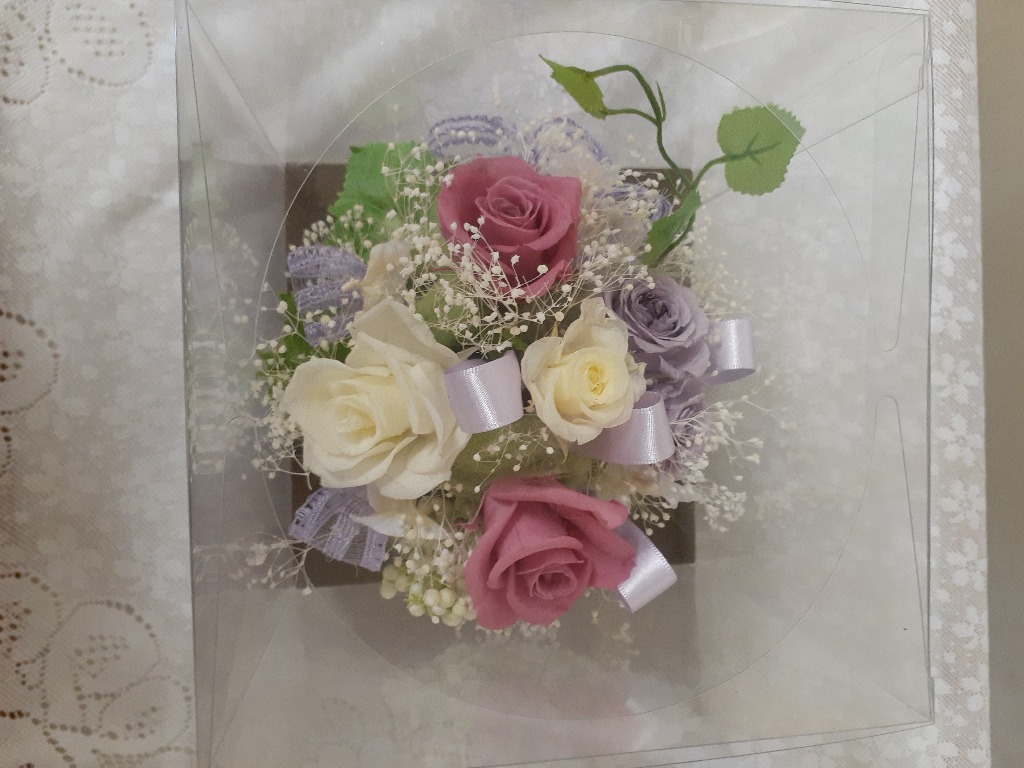 お花で素敵に飾ってさしあげたい❗と意欲的にレッスンされてました。素敵に仕上がりました。
